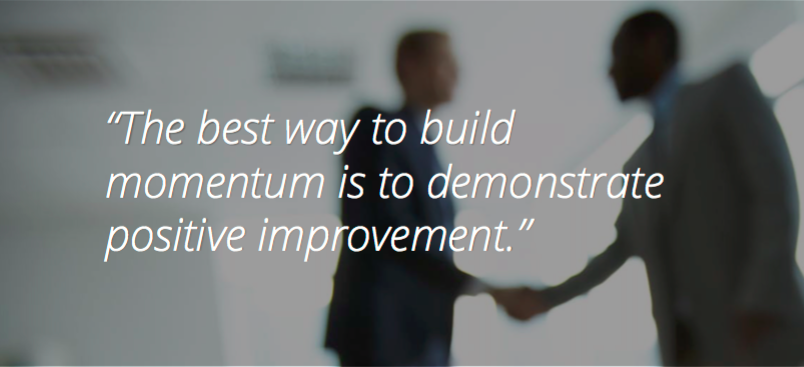 - Set the baseline – the best way to build momentum is to demonstrate positive improvement and to do that, you need an unarguable reference point of where you started from