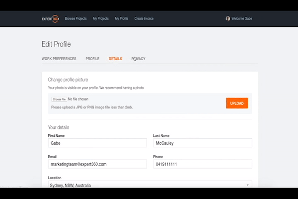 Allow your email to be displayed on your profile This privacy setting, although self explanatory, is an important one. A tiny portion of clients prefer to communicate with consultants using their own email service. However, if you would prefer to keep your email private, you can rest assured knowing that clients will always still contact you through the platform if you have a standout application. Please note that taking invoicing off the Expert360 platform is a violation of our terms of service.