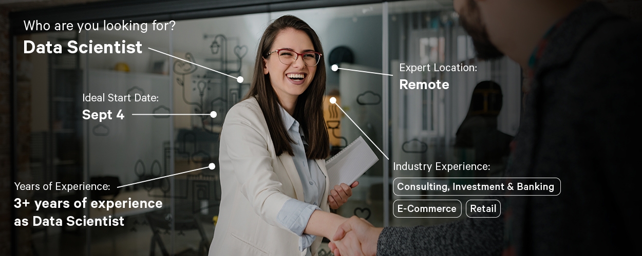 By detailing who you want, Expert360’s matching technology works smarter to find the right Expert for you. Your list of suggested candidates will closely align with what you have in mind, making it easy to narrow down the applicants and decrease your time-to-hire.